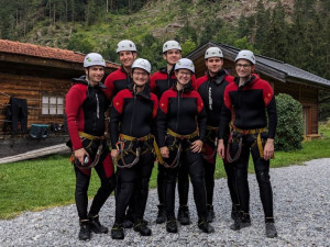 Diese vielfältigen Aufgaben benötigen eine Menge Ausbildung und Übung. Aus diesem Grund fuhren sieben Strömungsretterinnen und Strömungsretter des DLRG Kreisverbands Offenbach-Land im Rahmen der jährlichen Fortbildung mit dem Kreisverband Offenbach-Land über ein verlängertes Wochenende ins Ötztal nach Österreich. Vor Ort fanden die Teilnehmer optimale Übungsbedingungen vor. Neben Seilaufbauten wurde unter anderem eine Canyoning-Tour in der Auerklamm absolviert. Der Einstieg erfolgte gut gesichert über einen Klettersteig den Schlucht hinab. Während der Tour musste man sich mehrfach an bis zu 20 Meter hohen Wasserfällen abseilen, Felsen hinabrutschen und aus Höhen bis zu 10 Metern in das eiskalte Wasser springen. Neben viel Spaß konnten die Strömungsretter eine Menge Erfahrung sammeln. Barbara Rickert, Beauftragte Strömungsrettung des DLRG-Kreisverbands erklärt: „Auch wenn das Terrain sich deutlich von unserem Einsatzgebiet im Kreis Offenbach unterscheidet, die Techniken fürs Abseilen und die Sicherheitsausrüstung sind die gleichen“. Nach etwa drei Stunden sind alle Teilnehmer wohl auf aber sehr erschöpft unten im Tal angekommen.